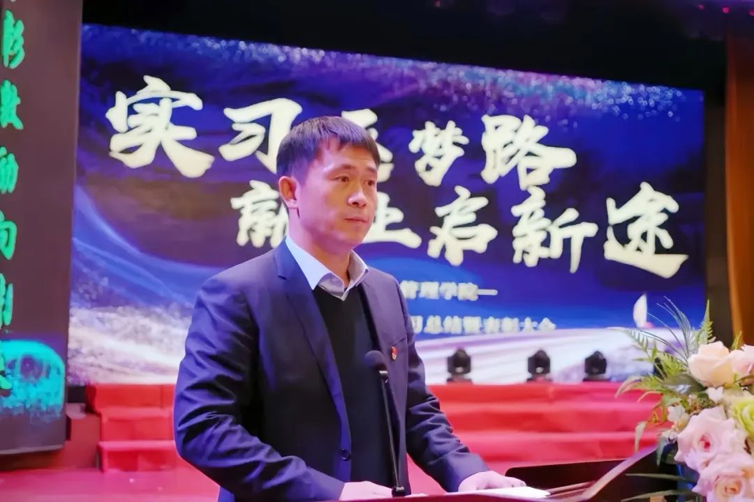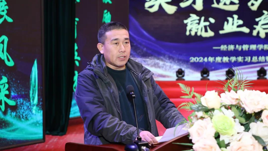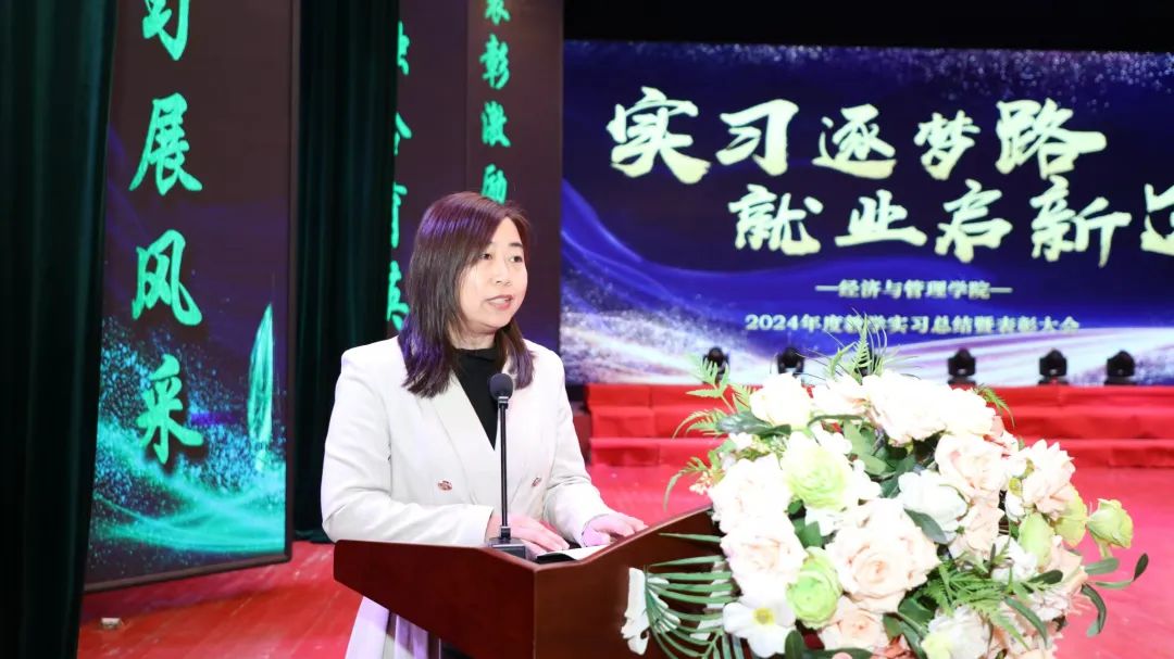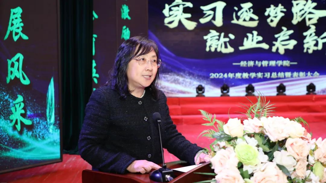 经济与管理学院副院长成颖对学院各专业实习情况进行总结发言