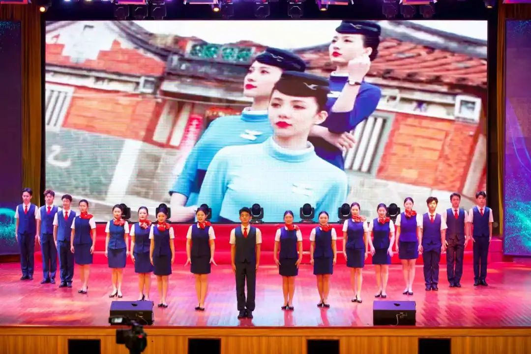 经济与管理学院航空服务与艺术管理专业带来舞蹈《航天韵律 星空之舞》。经济与管理学院学子身着制服,通过精准流畅的动作,尽显服务之韵、礼仪之美。他们挺拔的身姿,得体的举止,无一不彰显出航服学子的专业素养与职业形象,让礼仪之花在天空中尽情绽放。